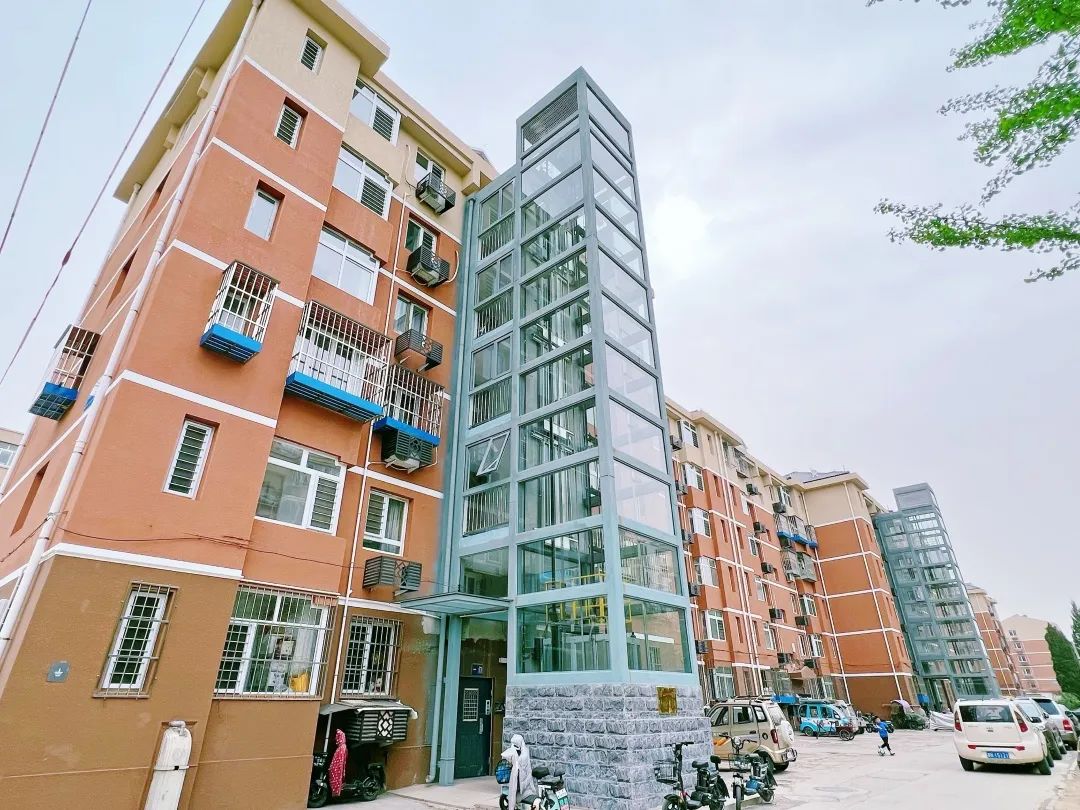 双阳南区建于20世纪90年代,为钢混结构的6层板楼,每层有12至15级台阶。加装电梯后,住在6层的居民甄红纳告诉记者:“我住的这个单元是我们小区第二批装上电梯的。有了电梯后,生活体验完全不同,在进入电梯后需要人脸识别系统选择楼层,避免了无关人员随意进入。”
